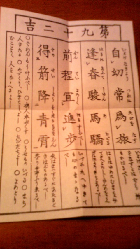 普通の「吉」の割には結構いいことが書いてあったので、嬉しかったです。