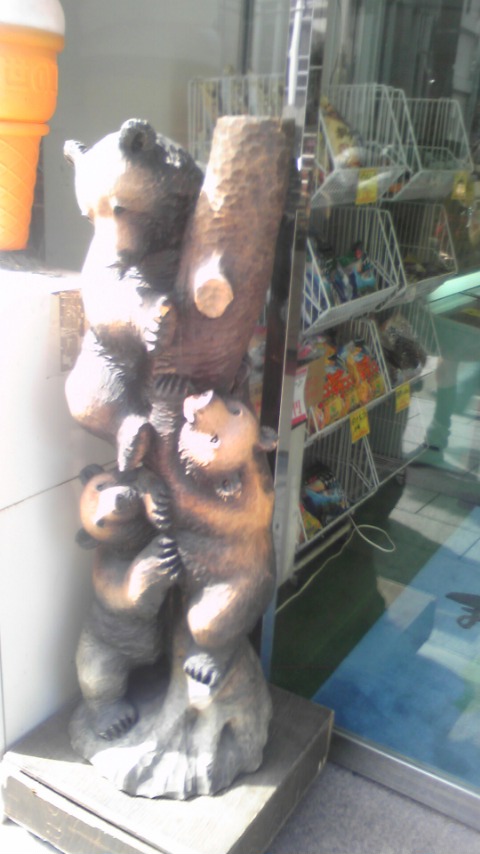 浅草寺を出て、北海道物産のお店の前を通ったら…木彫り熊を発見。