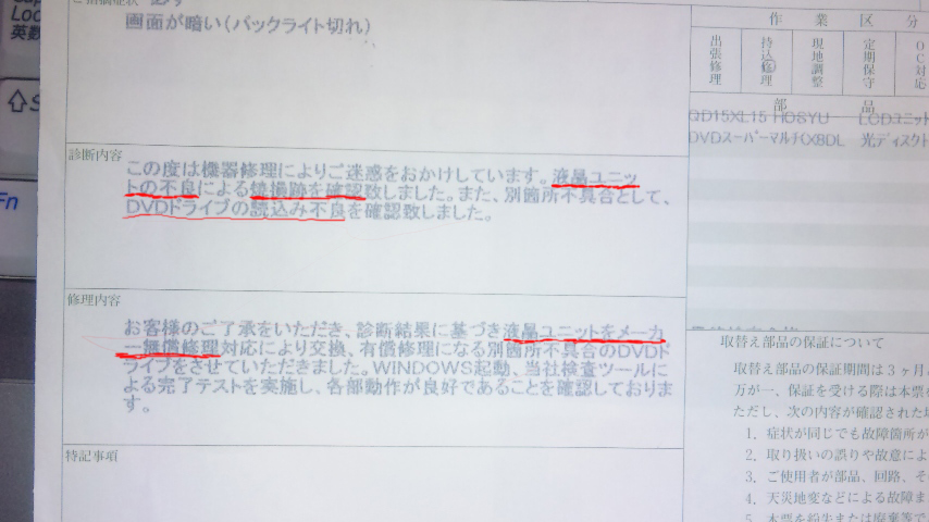 DVDドライブは有償だったものの、かけてた5年間保証のおかげで幸い15000円で済みました!(勿論年数が早ければもっと自己負担額は少ないです)
