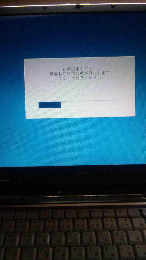 呆然と椅子に腰かけたまま「パソ初期設定中」の指示通りに待機。