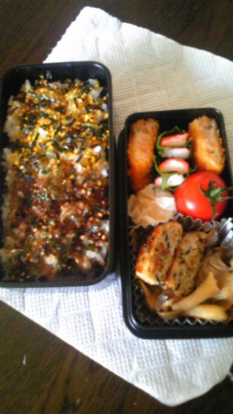 ・エリンギとしめじの…何だろなアレ…鰹だし+醤油+塩コショウの味付けで蒸したのf^_^;