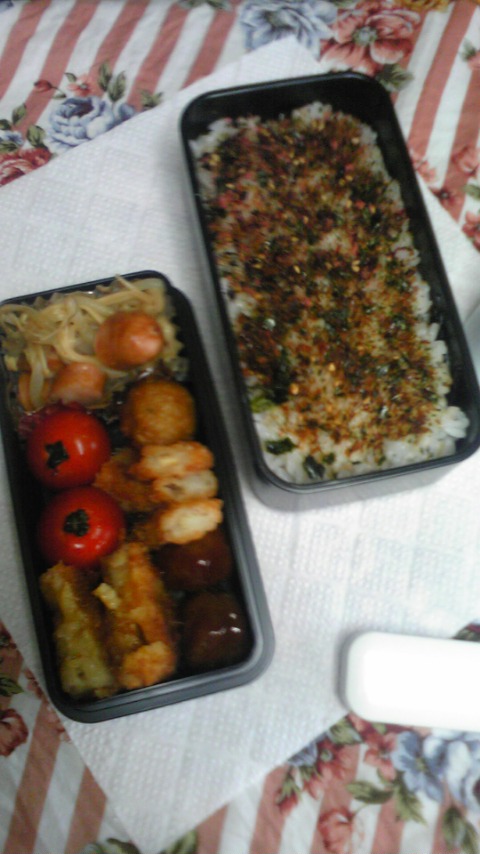 ・ごはん(梅ゆかり、本かつおのふりかけ+しいたけ昆布)